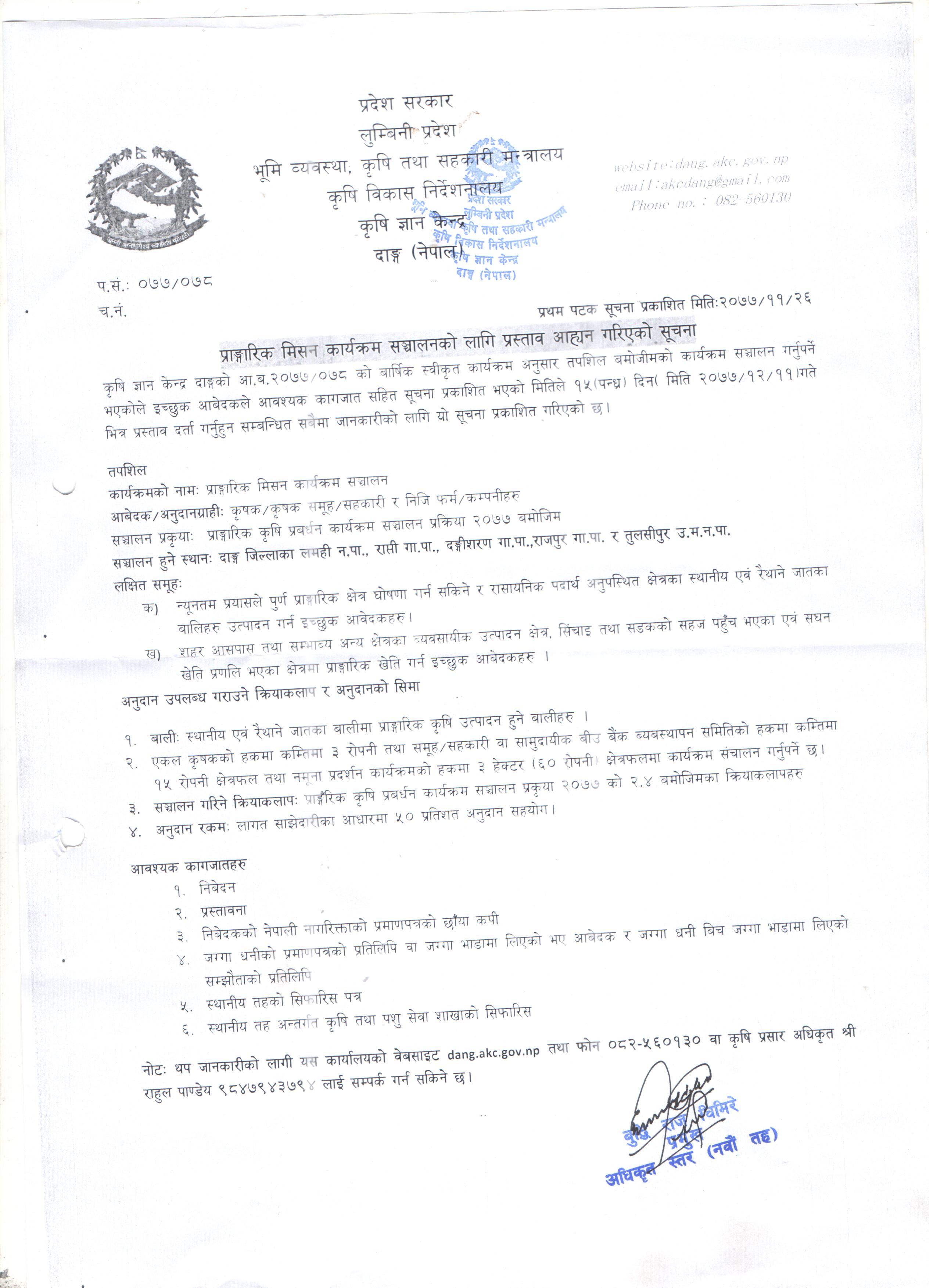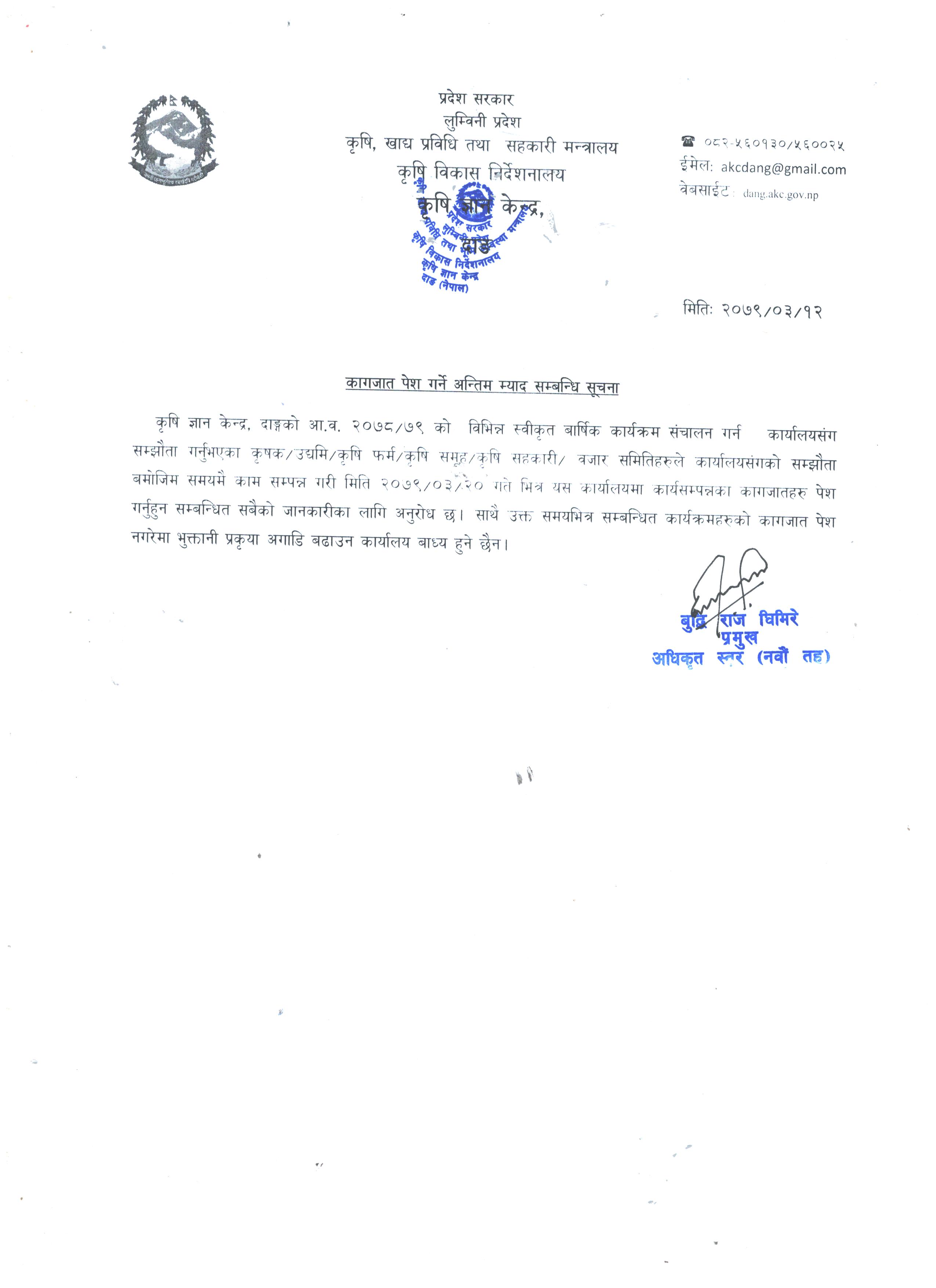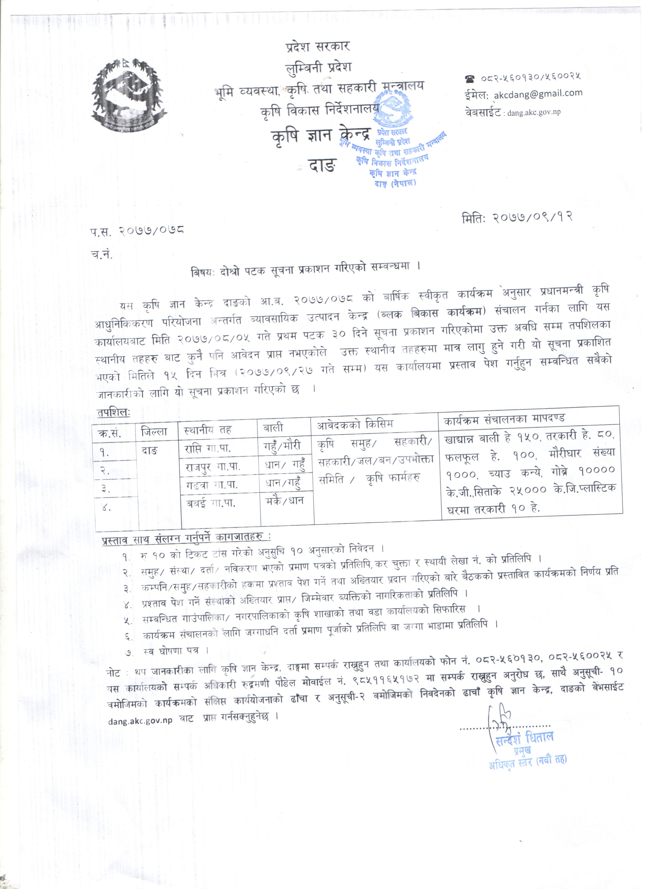 करार खेती कार्यक्रम पुनः दोश्रो पटक सूचना प्रकाशन गरिएको सम्बन्धमा | |